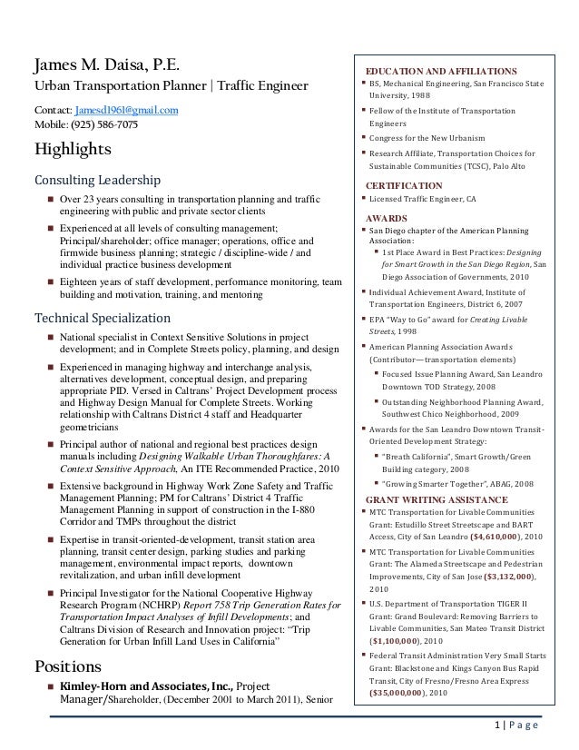 Degree* in Urban or Transportation Planning, Transportation Engineering, Civil Engineering or related field and five years of experience where the primary function of the position was in transportation planning, three years of which must have been in a in a ... View This Document